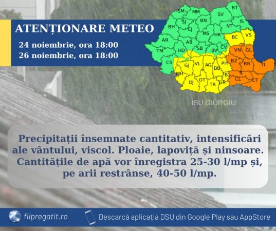 Administrația Națională de Meteorologie a emis o atenționare tip Cod Galben de Continue reading