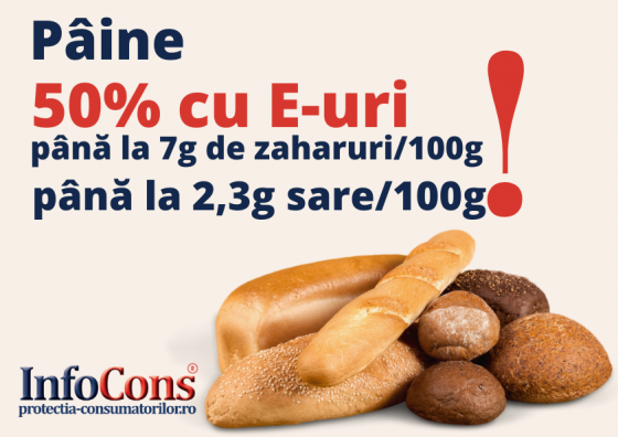 Pâine: 50% cu E-uri, până la 7 g de zaharuri și 2,3 g sare per 100 g de produs!