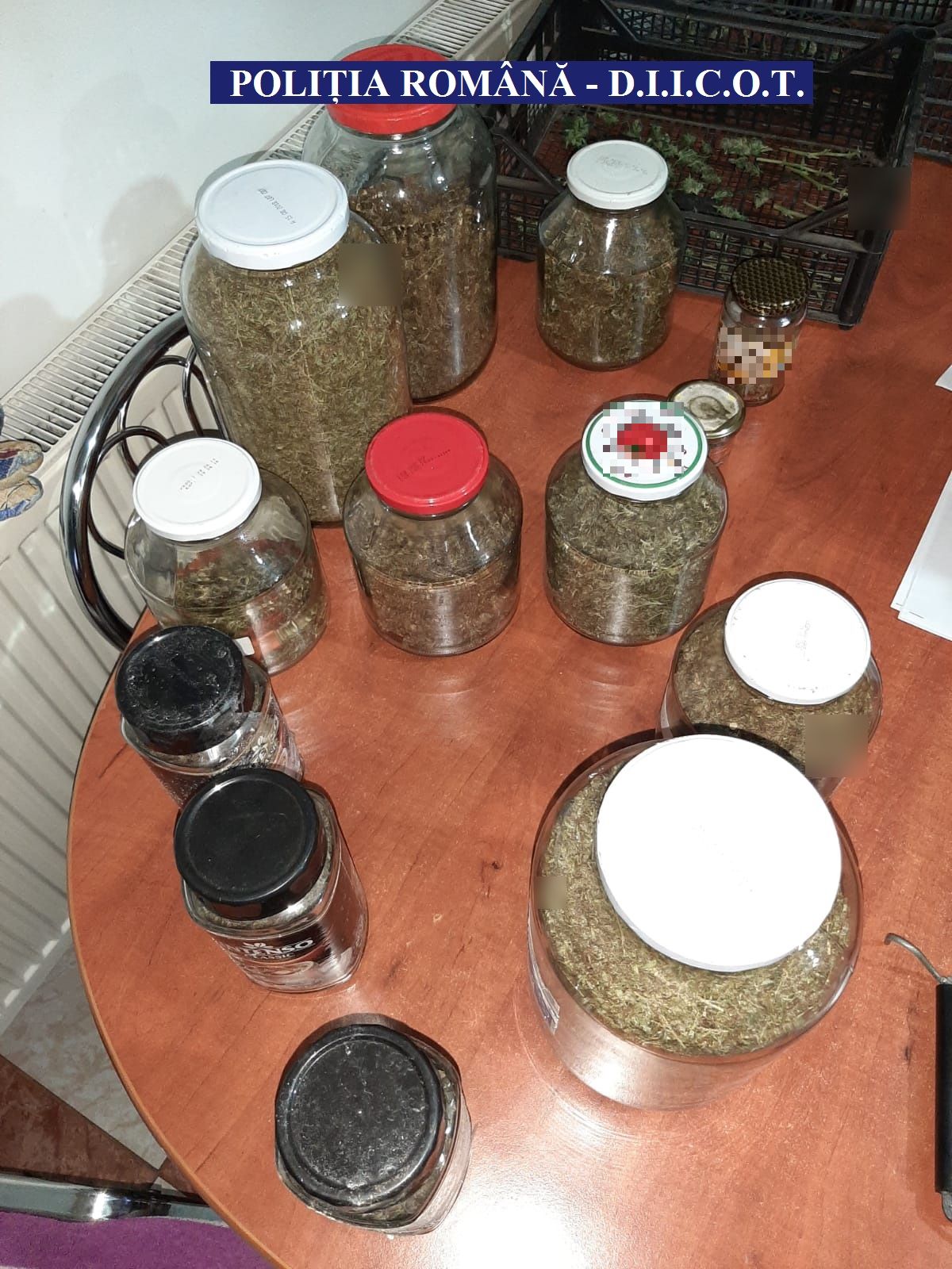 Astfel, în urma percheziției domiciliare, au fost descoperite mai multe recipiente ce conțineau aproximativ 4 kg. de cannabis, precum și o cultură outdoor compusă din 7 plante de cannabis.