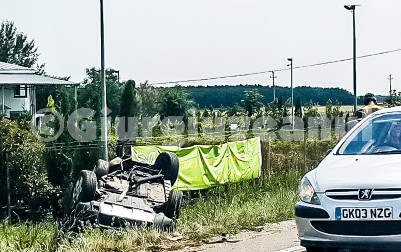 IMG_1215Şoferul unui autoturism Duster, un bucureştean în vârstă de 68 de ani, nu s-a asigurat în efectuarea unui viraj la stânga, pe DN 6, la ieşirea din Ghimpaţi, a pierdut controlul asupra volanului şi a intrat în coliziune cu o maşină Opel Astra, ce efectua manevra de depăşire a mai multor autoturisme.