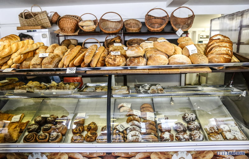 Pe lângă tot felul de produse de patiserie, aici se află pe rafturi pâini şi pâinici de toate felurile… pentru toţi mofturoşii, astfel: albă, neagră, intermediară, integrală cu maia, cu cartofi, cu tărâţe, cu ceapă, cu secară, cu măsline, împletită, în tavă, rădăcină, oltenească, dobrogeană… şi DE REŢINUT: pâinea este fără amelioratori. Intraţi în brutărie şi veţi avea ce alege!