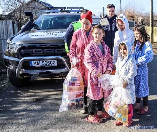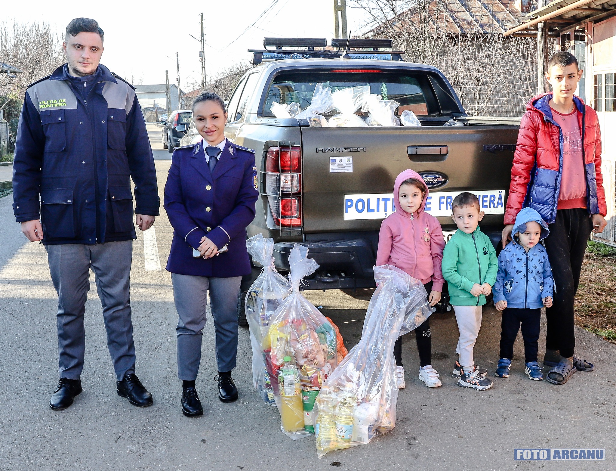 Astfel, poliţiştii de frontieră din cadrul Sectorului Poliţiei de Frontieră Giurgiu şi-au îndreptat atenţia spre mai multe familii care locuiesc pe raza comunelor Slobozia şi Oinacu din judeţul Giurgiu, cărora le-au oferit mai multe pachete cu alimente.