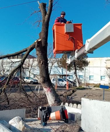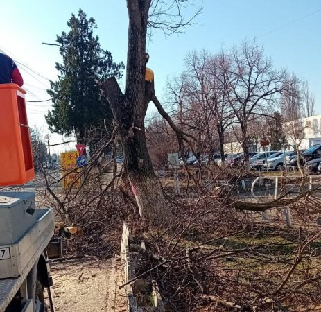 De asemenea, odată cu intrarea în vegetație a arborilor, sunt tăiate crengile care acoperă lămpile de iluminat stradal.