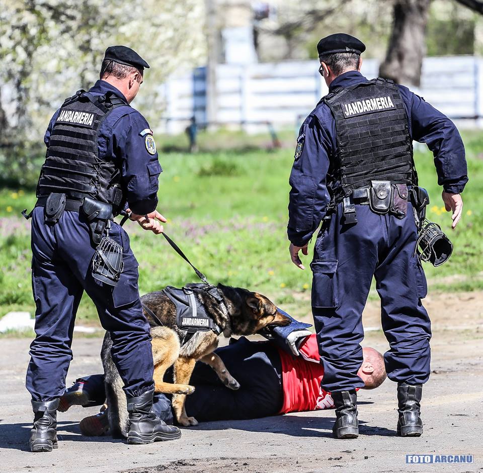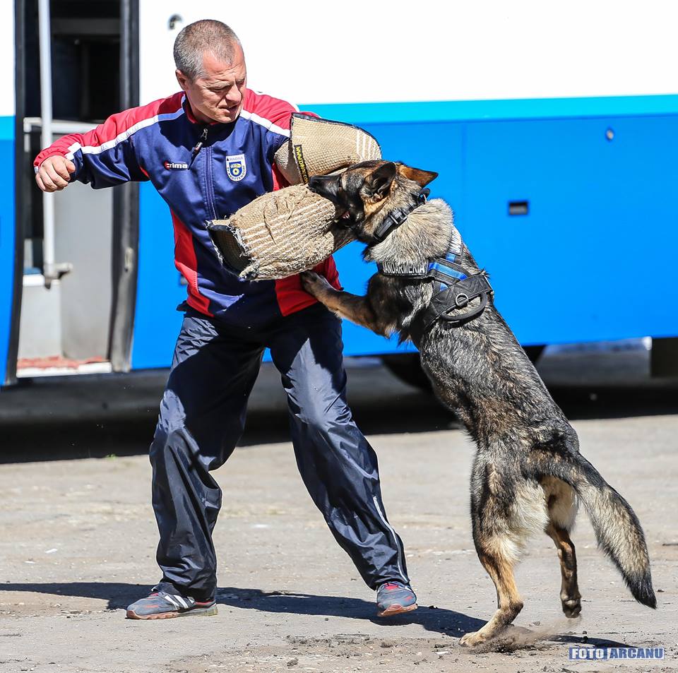 În scenă au intrat partenerii de nădejde din misiuni, doi dintre câinii de serviciu, Tea şi Rax, cu conductorii lor, care au făcut un adevărat spectacol.