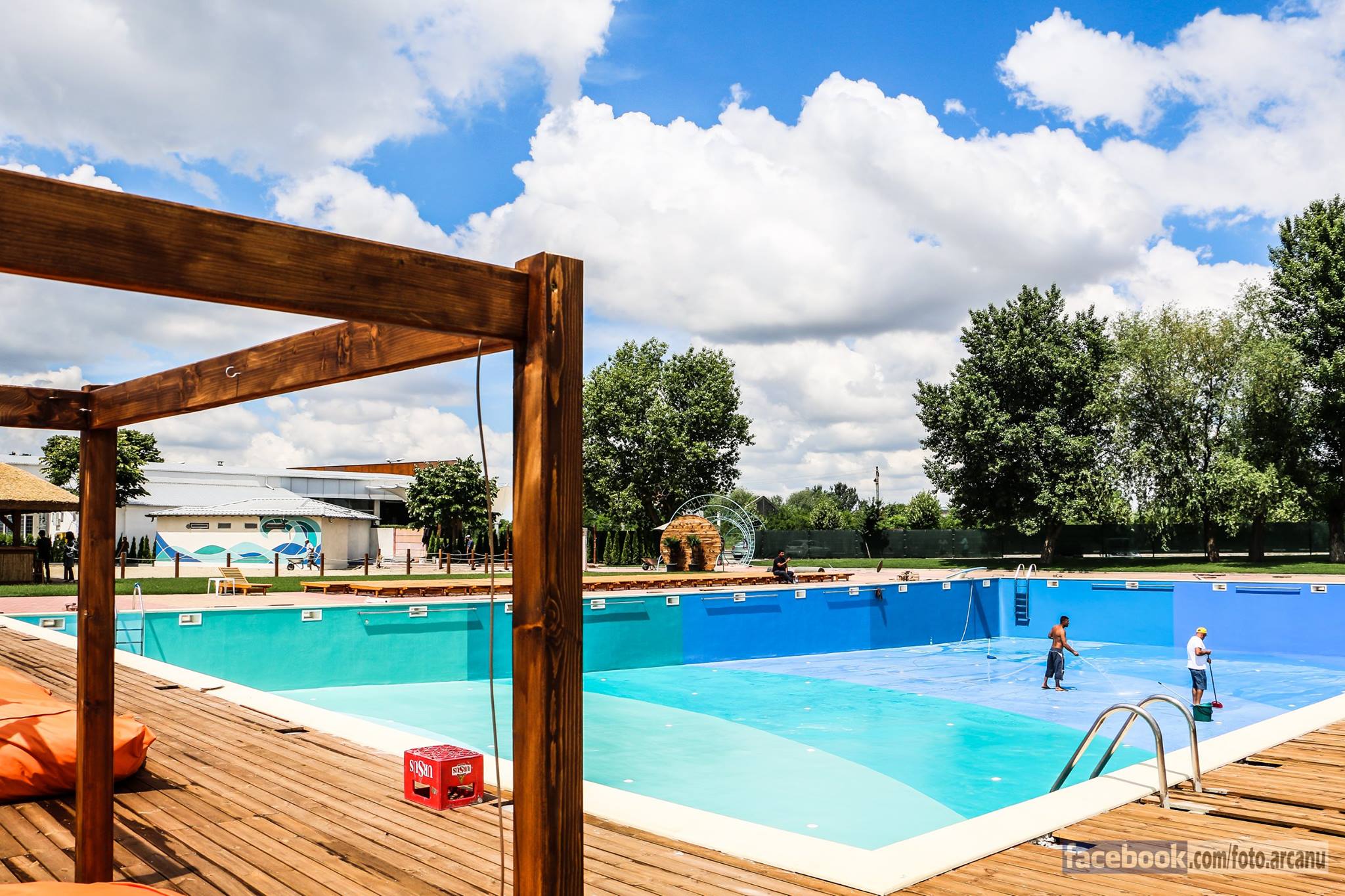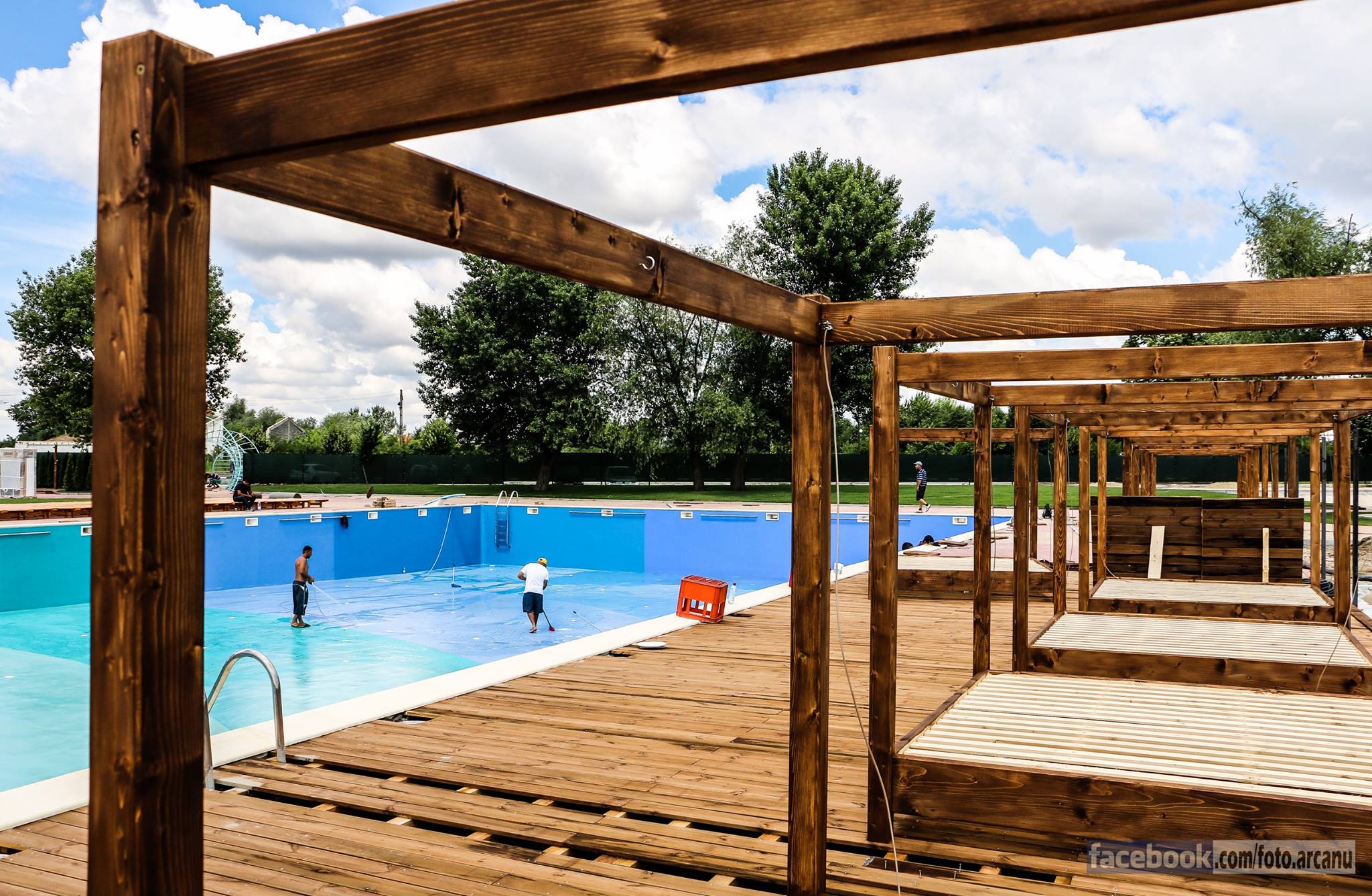 Totul este modernizat şi schimbat: s-au reabilitat spaţiile verzi din incintă şi aleile pietonale: spaţiile verzi sunt plantate cu gazon natural iar umbrarele şi barul au fost realizate din construcţii uşoare de lemn, iar şezlongurile sunt, de asemenea, din lemn.