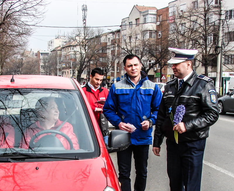 Maşinile conduse de femei au fost trase pe dreapta astăzi, 1 martie 2015, de poliţiştii Serviciului Poliţiei Rutiere Giurgiu. Poliţiştii rutierişti nu au oprit femeile în trafic pentru a le verifica documentele sau pentru a le da amenzi, ci pentru a le oferi simboluri ale primăverii, doamnelor şi domnişoarelor aflate la volan, cu ocazia zilei de 1 martie.