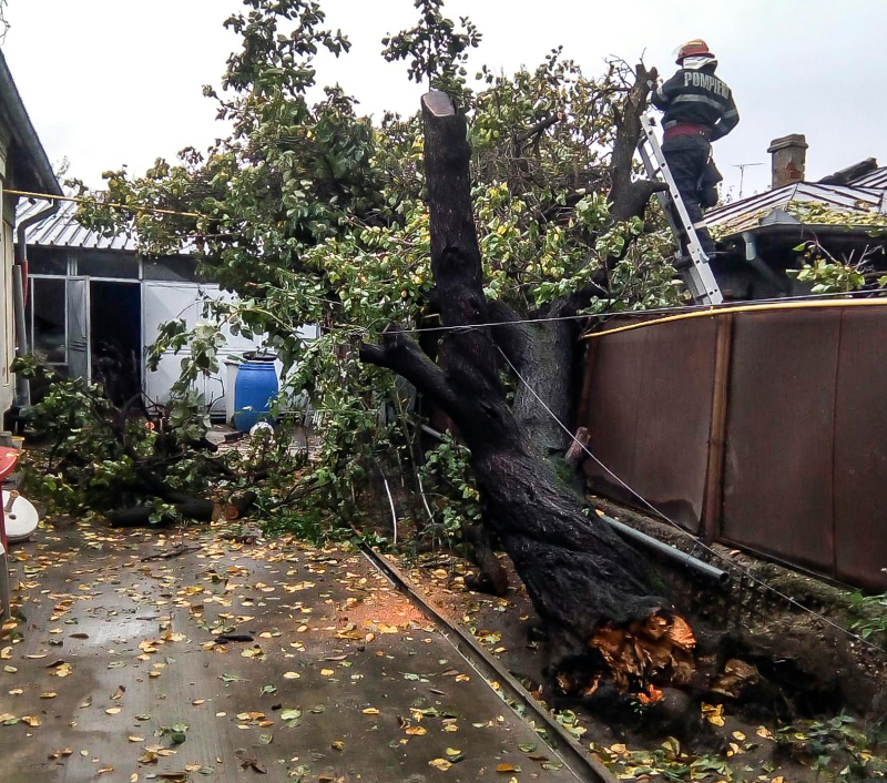 Un copac s-a rupt în zona Spitalului Judeţean şi a căzut pe un autoturism al unei angajate de la Direcţia de Sănătate Publică Giurgiu, avariindu-l.