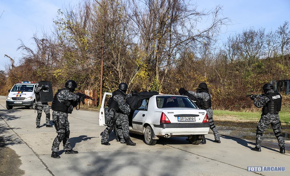 Exercițiul demonstrativ, căci despre asta a fost vorba, a constat în urmărirea și blocarea unui autoturism marca Dacia în care se aflau două persoane periculoase, care aveau asupra lor arme de foc.