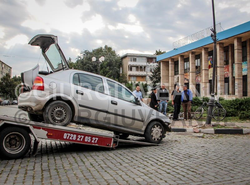 Astăzi, 17 septembrie 2014, la orele 9.30, pe bulevardul Mircea cel Bătrân, în direcţia de sens către Parcul Alei, F.A.R., de 18 ani, din Giurgiu, în timp ce conducea autoturismul marca Opel, pe fondul lipsei de experienţă în condus şi a neadaptării vitezei la condiţiile drum, a pierdut controlul direcţiei de deplasare intrând într-un stâlp din faţa teatrului „Tudor Vianu”.