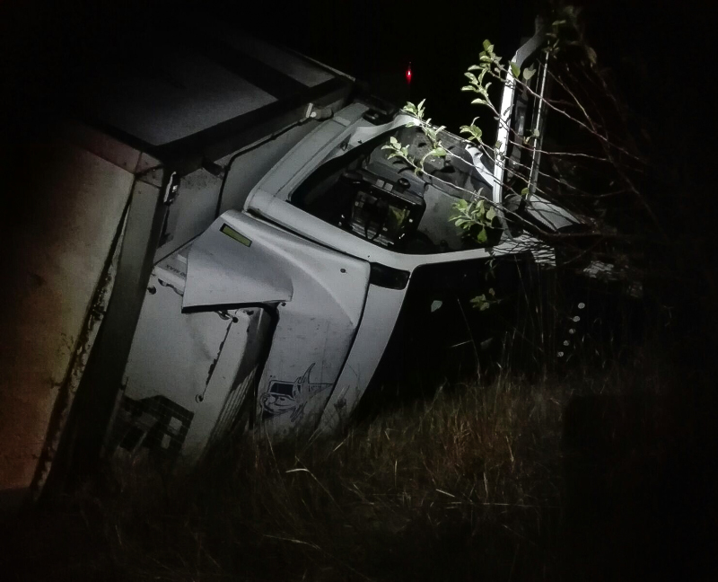 Un TIR încărcat cu struguri s-a răsturnat, în această dimineaţă, în jurul orei 6. 14, pe DN 5, într-un şanţ, după ce şoferul a pierdut controlul volanului.