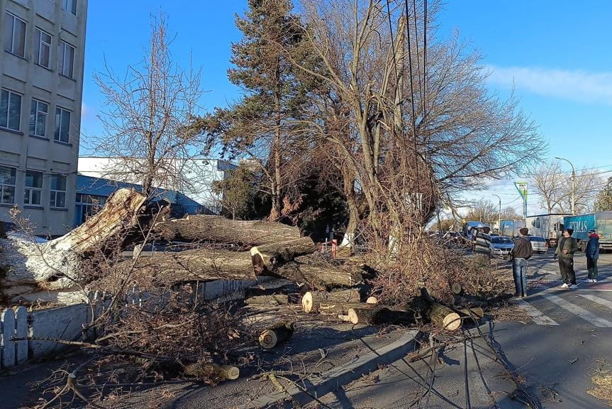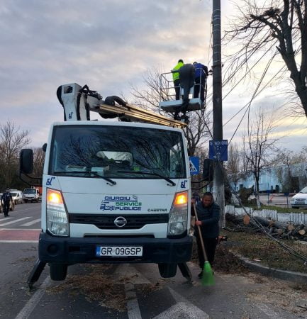 Echipele din cadrul societăților Giurgiu Servicii Publice și Giurgiu Servicii Locale sunt pe teren pentru degajarea copacilor care s-au rupt din cauza vântului foarte puternic, informează Primăria Municipiului Giurgiu.