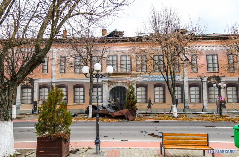 – șase acoperișuri de carton sau tablă căzute (Bd. București – casa de pariuri Mozzart – acoperiș de carton căzut pe trotuar și carosabil, blocul cu Sucursala Cec Bank – acoperișul din carton căzut pe carosabil, str. Decebal, bl. 56/2D, sc. A – acoperișul blocului căzut, fostul Institut de Proiectări – acoperiș din tablă aruncat pe pietonală, Școala Gimnazială “Sf. Gheorghe” – acoperiș căzut, precum și cărămizi din tencuiala școlii, căsuța de lemn care se află la sediul Direcției Poliției Locale – acoperiș căzut și geam spart