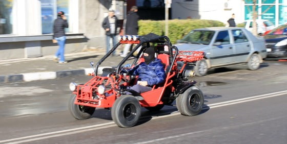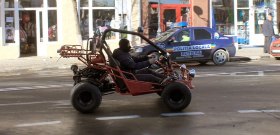 Buggy-ul din imagine este al doilea din Giurgiu şi este o variantă înmatriculabilă. Pentru prima oară în Giurgiu, cu un astfel de vehicul a „defilat” sporadic un alt giurgiuvean împătimit al motoarelor, fostul procuror militar Nicolae Coteanu.