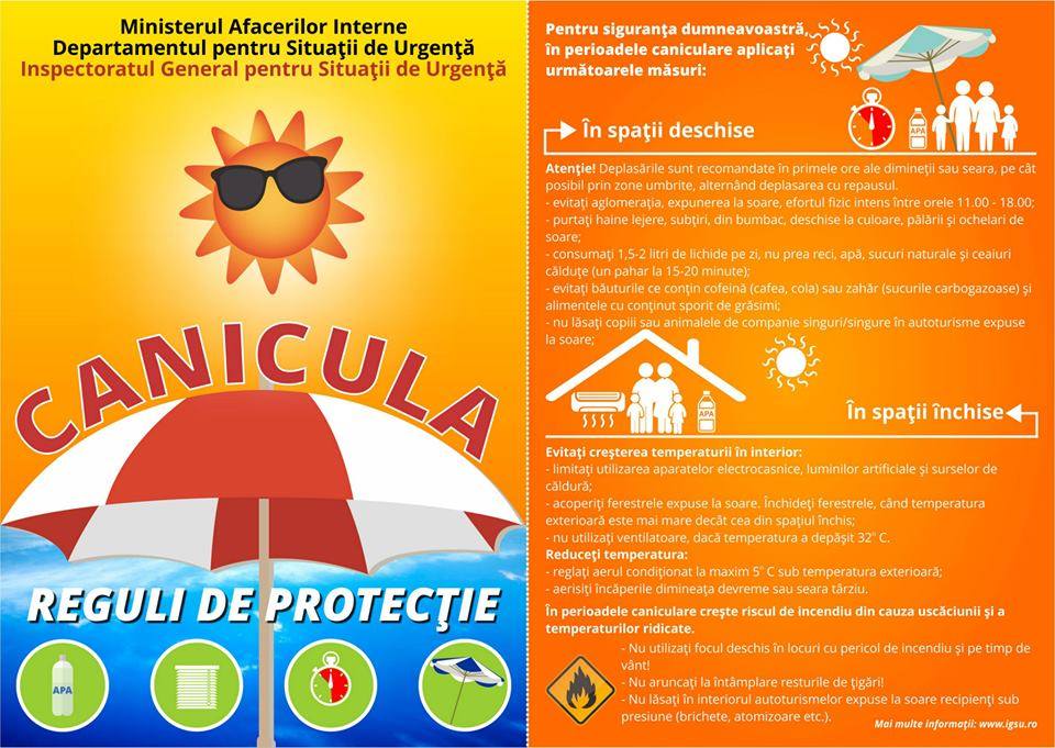 Pentru a trece cu bine de această perioadă caniculară, ISU Giurgiu recomandă cetăţenilor respectarea următoarelor măsuri: