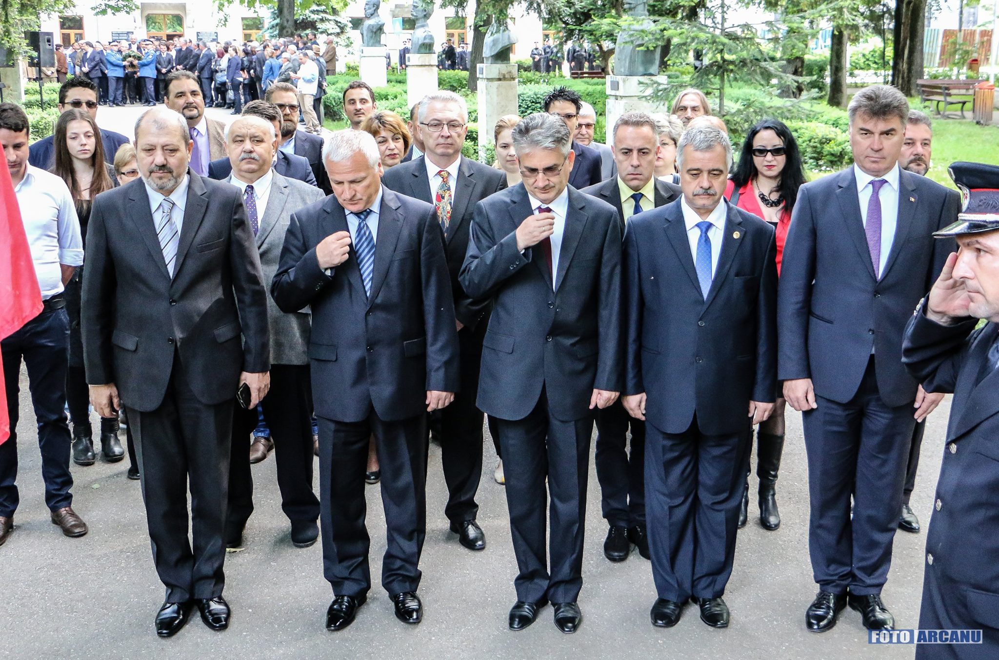 La monumentul Eroilor din Parcul Alei a fost organizat astăzi un ceremonial militar la care au participat reprezentanţi ai autorităţilor locale şi judeţene, militari şi politicieni.