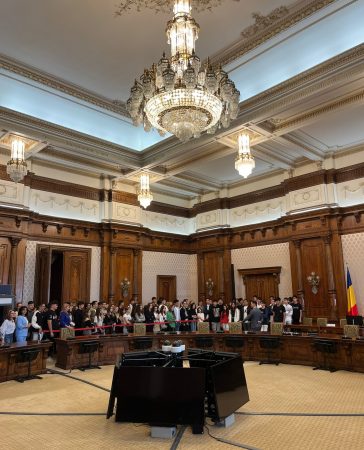 Apoi, elevii au participat la o lecție de democrație, la Palatul Parlamentului, unde au fost întâmpinați de parlamentari din județul Giurgiu.