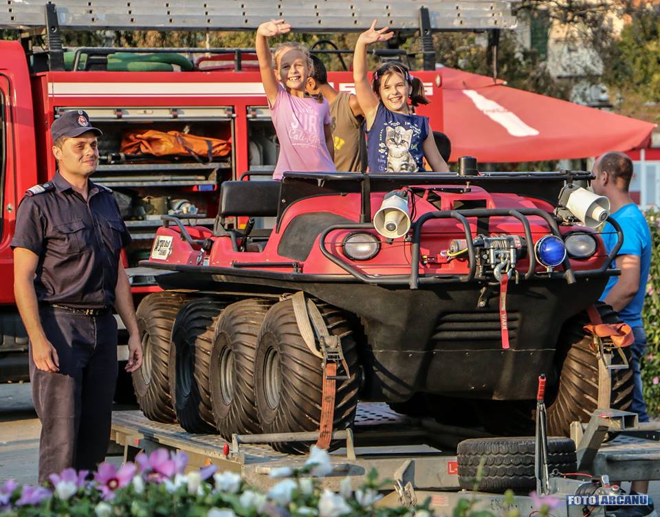 De asemenea, pompierii giurgiuveni şi-au prezentat tehnica şi echipamentele din dotare, în Parcul Mihai Viteazul din Giurgiu, între orele 18.00 – 22.00, cel mai agreat moment, spre încântarea celor mici, a fost ridicarea în nacela scării culisabile.
